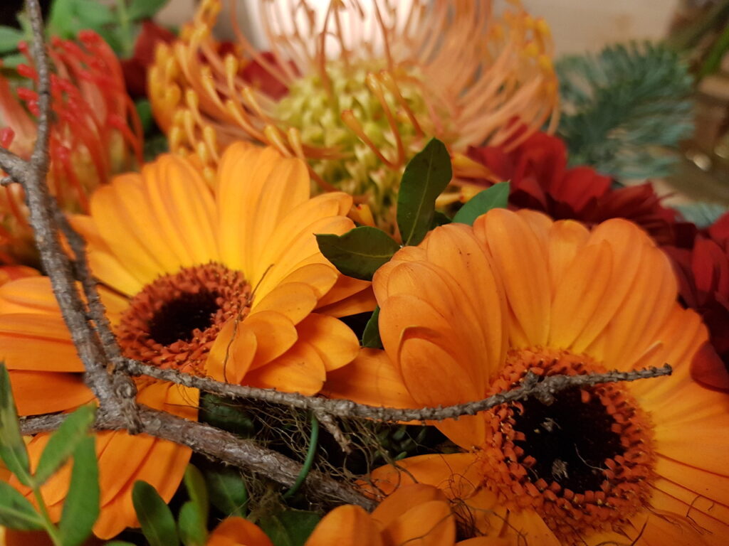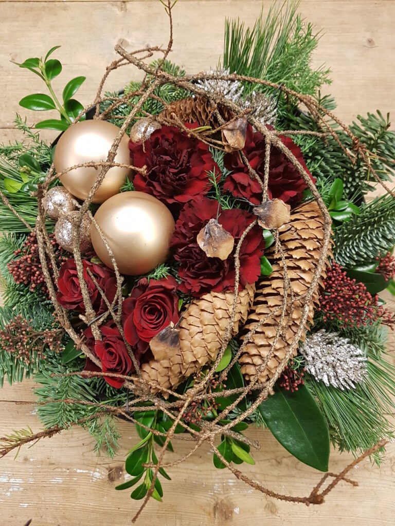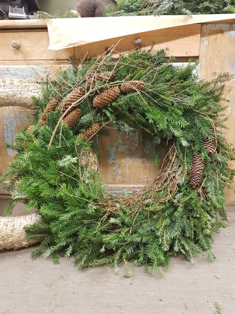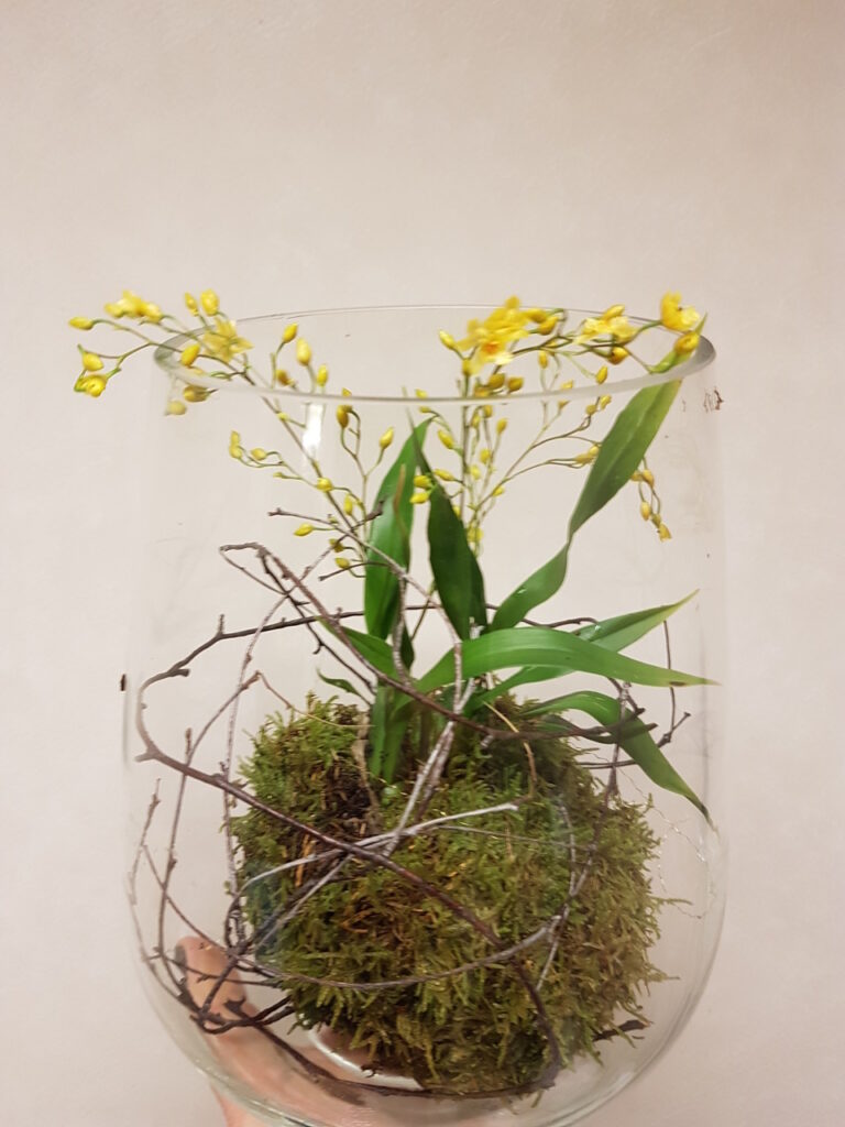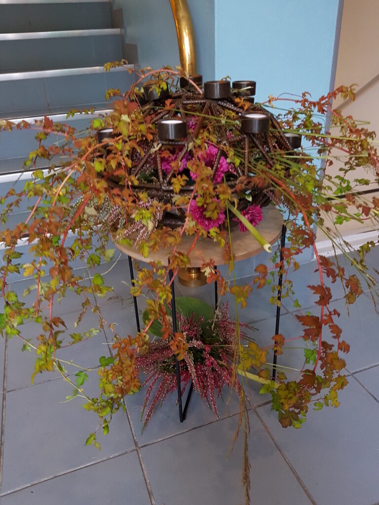 Bruk det man har, gjerne noe fra naturen – kontraseter er fint (rustikt mot myke blomster).