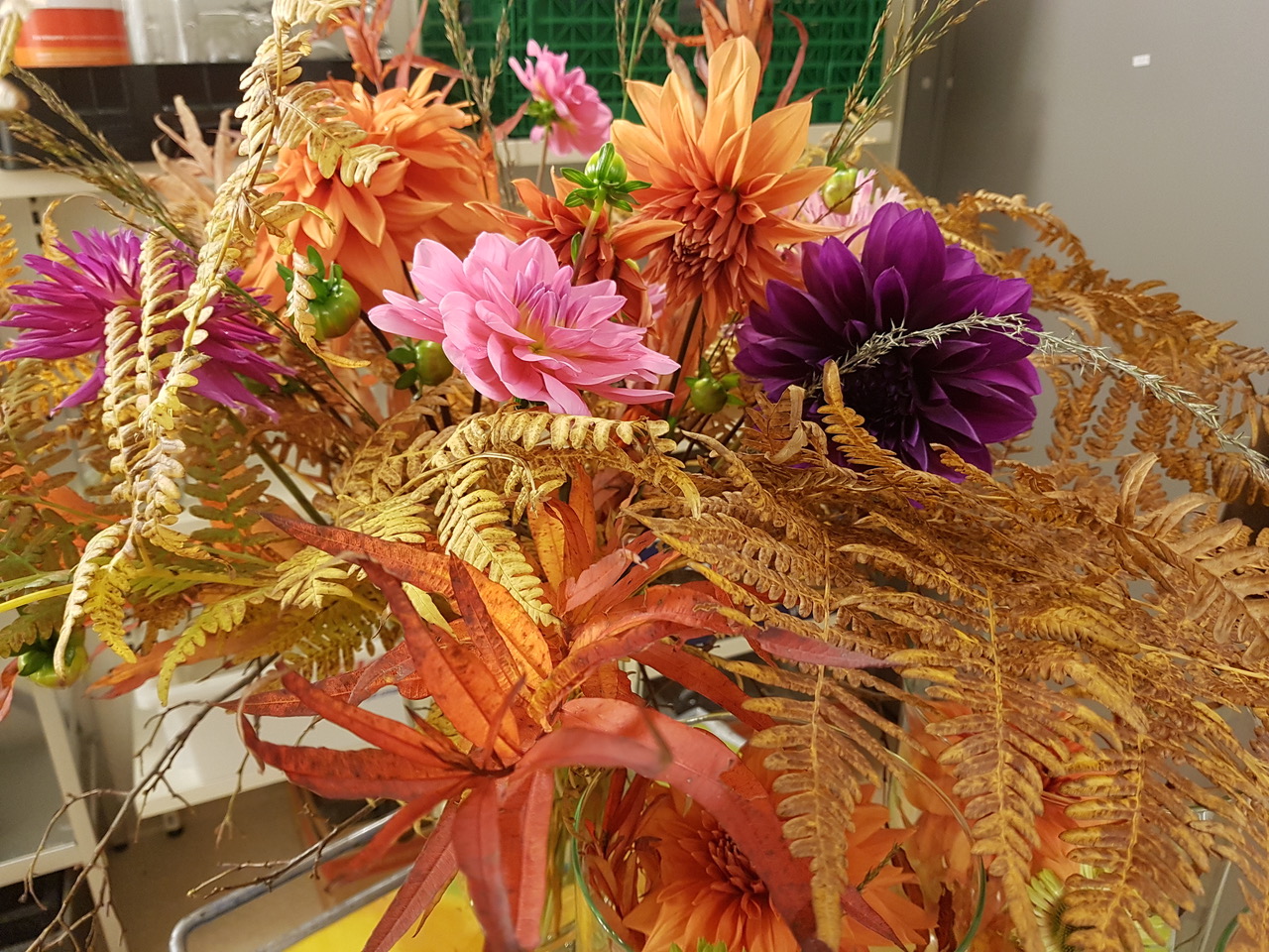 Bruk det man har, gjerne noe fra naturen – kontraseter er fint (rustikt mot myke blomster).
