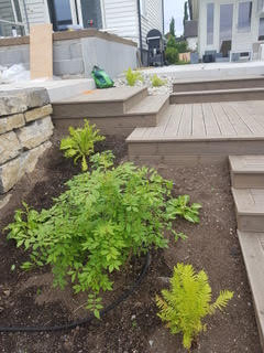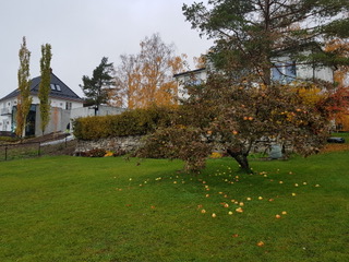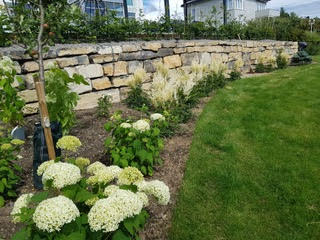 Totalt forandret hagen til kunden. Bjørketræne ble fjernet.