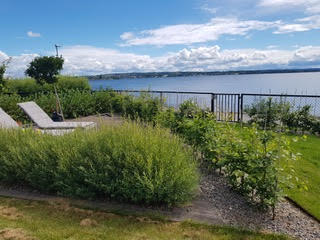Flott trapp og buete former, masse frodige blomster. Sitteplass, eller soldekk – som ligner på båt. Mye frodigere, og stramme former, som passer til huset. Ny gardplass, for å snu bilen. Stier og nye trapper, og ny mur. Utvidet sitteplassen opp mot huset. Bålpanne, som kunden har designet selv.